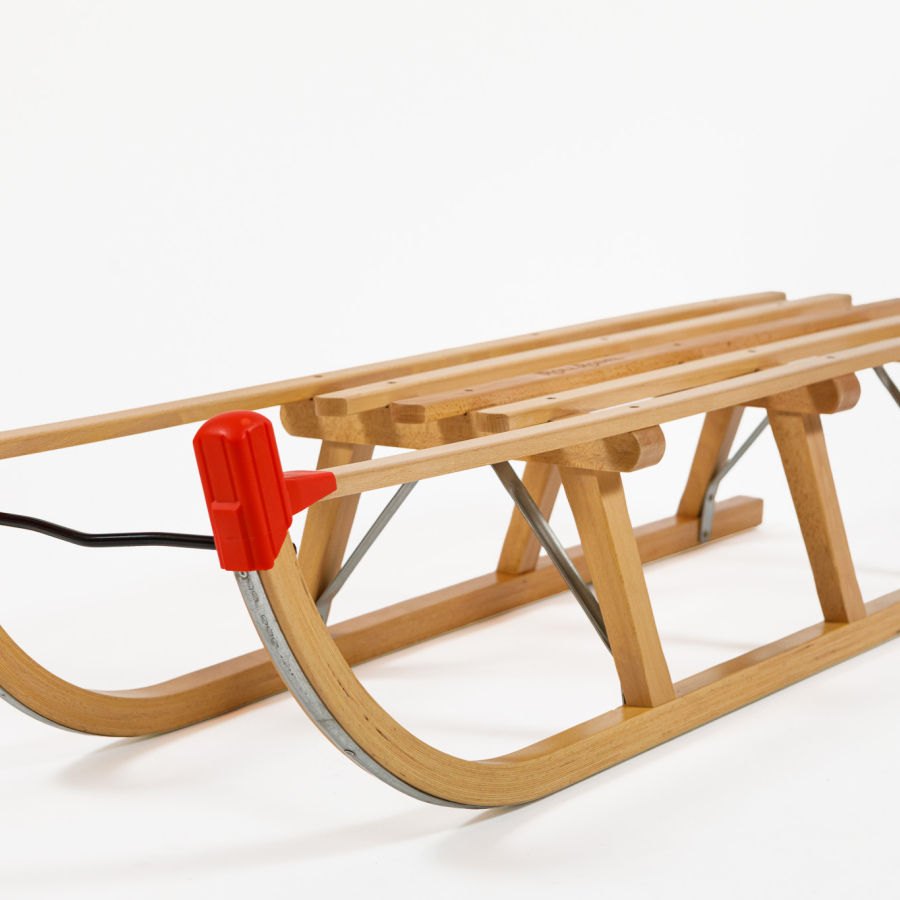 Robust Davos-style sledge with three crossbar bridges for enhanced stability and weight capacity. Handcrafted from sustainable Polish wood. TÜV certified. Available in two larger sizes (110, 120cm), ideal for adults, tandem riding, or anyone seeking maximum durability and performance.