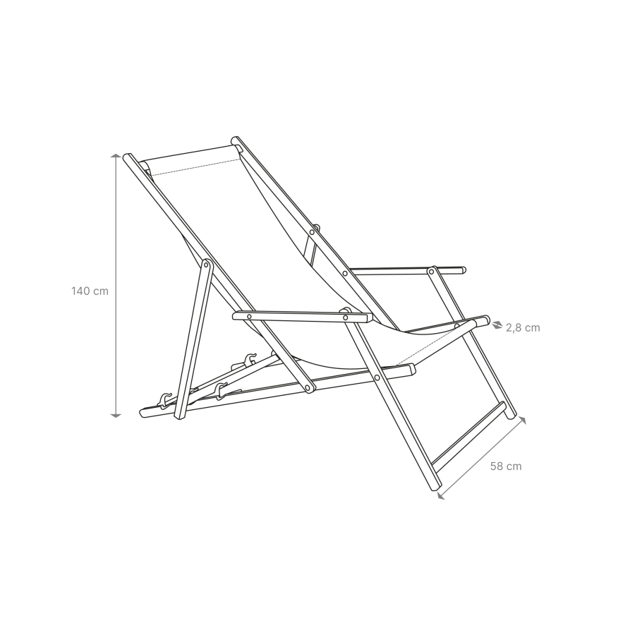 Leżak premium ze zintegrowanymi drewnianymi podłokietnikami, wykonany ręcznie z sustainably pozyskanego polskiego drewna w naszych warsztatach w Białce. Posiada wiele pozycji regulacji oparcia i klasyczną tkaninę w paski. Certyfikat FCBA. Dostępny w 5 rozmiarach od 1400mm do 1600mm dla zwiększonego komfortu i wsparcia.