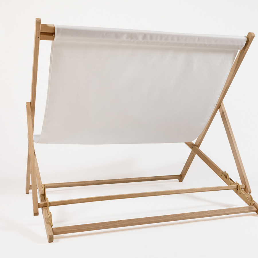 Leżak Podwójny został zaprojektowany z myślą o wspólnych chwilach relaksu—niezależnie od tego, czy w ogrodzie, na tarasie, przy basenie, czy w obiektach hotelarskich i rekreacyjnych. Model ten reinterpretuje tradycyjny leżak w większym, dwuosobowym formacie, oferując dużo przestrzeni przy zachowaniu czystej, ponadczasowej sylwetki bez podłokietników. Rama jest wykonywana ręcznie z wysokiej jakości drewna bukowego, starannie wyselekcjonowanego z lasów zarządzanych w sposób zrównoważony. Znane ze swojej wytrzymałości, stabilności i gładkiego usłojenia drewno bukowe stanowi idealną podstawę konstrukcyjną dla podwójnego leżaka. Naturalne wykończenie podkreśla autentyczny charakter drewna, zachowując jego ciepły, elegancki wygląd. Każdy element drewniany jest precyzyjnie formowany, wygładzany i wykańczany ekologicznymi powłokami na bazie wody, aby zapewnić trwałość i wyrafinowane wrażenia dotykowe. Kluczową cechą tego modelu jest trójstopniowy mechanizm bezpieczeństwa i regulacji oparcia. Zintegrowany system zapobiega przypadkowemu złożeniu się leżaka podczas użytkowania, zapewniając niezawodną stabilność dla dwóch użytkowników. Jednocześnie umożliwia regulację oparcia w trzech pozycjach, pozwalając użytkownikom wybrać preferowany stopień odchylenia—od pozycji siedzącej po bardziej rozluźnioną pozycję do leżenia. Rozwiązanie to łączy bezpieczeństwo i komfort w jednym, intuicyjnym mechanizmie. Powierzchnia siedziska wykonana jest z tkaniny 100% poliestrowej, wybranej ze względu na trwałość, odporność na rozciąganie i przydatność do użytku na zewnątrz. Tkanina zapewnia wygodne podparcie przy zachowaniu odpowiedniej cyrkulacji powietrza, co czyni ją idealną do środowisk o ciepłym klimacie. Opcjonalnie leżak może być wyposażony w dwie oddzielne tkaniny siedziskowe zamiast jednej ciągłej powierzchni, oferując zwiększony indywidualny komfort i wizualne rozróżnienie. W zastosowaniach brandingowych i komercyjnych można dodać opcjonalny wieszak na logo z tyłu, umożliwiając subtelną personalizację bez zakłócania czystego designu leżaka. Czyni to Leżak Podwójny szczególnie atrakcyjnym dla hoteli, kurortów plażowych, spa, kawiarni i zastosowań promocyjnych. Pomimo dużych rozmiarów leżak pozostaje praktyczny i łatwy w obsłudze dzięki składanej konstrukcji, umożliwiając efektywne przechowywanie i transport. Brak podłokietników wzmacnia jego minimalistyczną estetykę i zapewnia wszechstronność w szerokim zakresie zastosowań. Produkowany w naszym zakładzie produkcyjnym zero waste, z pełnym recyklingiem materiałów i odpowiedzialnym pozyskiwaniem surowców, Leżak Podwójny odzwierciedla nasze zaangażowanie w zrównoważone rzemiosło i długotrwałą jakość. Jest to solidne, eleganckie rozwiązanie do wspólnego relaksu na świeżym powietrzu—zaprojektowane tak, aby służyć niezawodnie i pięknie starzeć się z biegiem czasu.