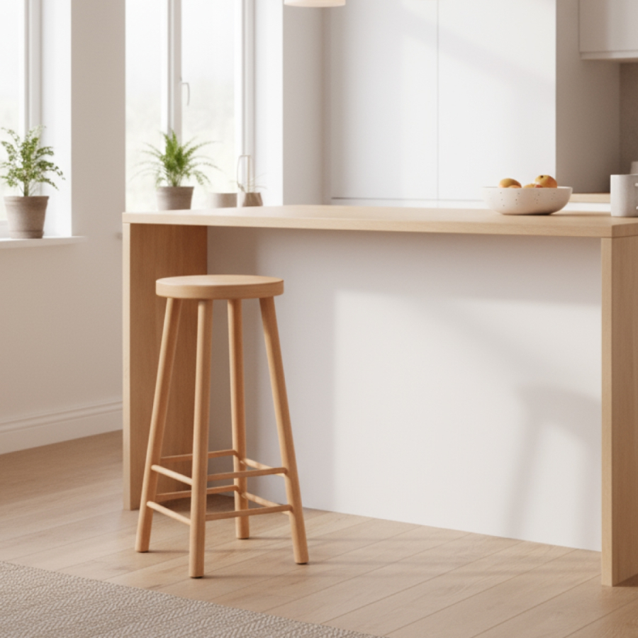 Wysoki stołek barowy Spolnota rozszerza naszą ofertę miejsc siedzących barowych, aby pomieścić prawdziwe wysokości barowe i powierzchnie do pracy na stojąco. Ręcznie wykonany w naszych warsztatach w Białce z litego drewna, ta wyższa wersja (72 cm wysokości) jest odpowiednio przeskalowana do blatów barowych, stołów pubowych i powierzchni roboczych na wysokości stojącej, które stają się coraz bardziej popularne we współczesnych kuchniach i przestrzeniach jadalniapo swobodnych. Dodatkowa wysokość stwarza unikalne wyzwania inżynieryjne, którym nasi rzemieślnicy stawiają czoła poprzez staranne proporcjonowanie, strategiczne wzmocnienia i techniki konstrukcyjne dopracowywane przez dziesięciolecia produkcji mebli. Skonstruowany w całości z litego drewna wybranego ze względu na prostość słojów i właściwości strukturalne, stołek wykorzystuje konstrukcję toczoną nóg, w której każda noga jest indywidualnie kształtowana na tokarce. Proces toczenia wyższych stołków wymaga szczególnych umiejętności — wydłużona długość stwarza więcej możliwości nawarstwiania się niewielkich nieregularności, a dłuższe nogi doświadczają większych sił dźwigni, które wymagają optymalnego rozkładu wytrzymałości. Nasi rzemieślnicy orientują słoje dla maksymalnej wytrzymałości, toczą profile równoważące atrakcyjność wizualną z koniecznością strukturalną i wybierają drewno o odpowiedniej gęstości do wymagającego zastosowania. System poprzeczek łączących nogi staje się jeszcze bardziej krytyczny na tej wysokości, pełniąc zarówno rolę strukturalną, jak i funkcjonalną. Strukturalnie poprzeczki wiążą nogi w zunifikowaną ramę, która opiera się siłom skręcającym i rozchwiania, których doświadczają wyższe stołki. Funkcjonalnie poprzeczki zapewniają niezbędne podnóżki umieszczone na wygodnych wysokościach dla siedzących użytkowników — kluczowe dla podwyższonych miejsc siedzących, gdzie nieodparte zwisające stopy powodowałyby dyskomfort i problemy z krążeniem. Pozycjonowanie poprzeczek jest starannie obliczone, aby zapewnić wygodny dostęp do podnóżka niezależnie od kierunku, w którym jesteś zwrócony podczas siedzenia. Okrągłe siedzisko (30 cm średnicy) zachowuje te same wygodne wymiary co wersja standardowej wysokości, zapewniając odpowiednie podparcie bez nadmiernej masywności. Relacja wysokości siedziska do poprzeczek jest starannie utrzymywana pomimo ogólnego zwiększenia wysokości, zapewniając użytkownikom możliwość wygodnego oparcia stóp podczas siedzenia. Powierzchnia siedziska otrzymuje takie samo staranne kształtowanie i wygładzanie jak wszystkie nasze meble, tworząc wygodną platformę, która równomiernie rozkłada ciężar, pozostając jednocześnie łatwą do czyszczenia i konserwacji. Zwiększona wysokość tworzy większą dźwignię, która wzmacnia jakiekolwiek obluzowanie lub chwiejność w połączeniach, czyniąc precyzyjne stolarstwo absolutnie niezbędnym. Nasi rzemieślnicy wycinają każde gniazdo i czop lub wiercą każdy otwór na kołek z tolerancjami mierzonymi w ułamkach milimetra, tworząc dopasowania tak ciasne, że połączenia często muszą być przekonywane do miejsca podczas montażu. Ta precyzja, w połączeniu z wysokiej jakości klejami i odpowiednim wzmocnieniem, tworzy połączenia, które pozostają sztywne i wolne od chwiejności przez lata regularnego użytkowania. Podstawa jest proporcjonalna, aby zapewnić stabilność odpowiednią do wysokości, zapobiegając przewróceniu się nawet wtedy, gdy użytkownicy się pochylają lub przesuwają ciężar. System wykończenia dostosowany do użytku wewnętrznego chroni drewno, jednocześnie podkreślając jego naturalne piękno, ze szczególną uwagą poświęconą powierzchniom, które doświadczają najwięcej kontaktu i zużycia. Kilka warstw jest starannie nakładanych z dokładnym szlifowaniem między warstwami, budując ochronę, która jest zarówno funkcjonalna, jak i atrakcyjna. Wykończenie jest bezpieczne dla żywności i łatwe w konserwacji, odpowiednie dla mebli używanych w jadalni i obszarach przygotowywania żywności. Wysoki stołek barowy uosabia nasze zaangażowanie w tworzenie mebli odpowiednio przeskalowanych do ich zamierzonego użytku, zamiast zmuszania jednego rozmiaru do obsługi wszystkich zastosowań. Różne wysokości blatów wymagają różnych wysokości siedzeń, a używanie nieproporcjonalnie przeskalowanych mebli powoduje dyskomfort i niezgrabne pozycjonowanie, które degraduje doświadczenie jedzenia lub pracy. Oferując stołki barowe na odpowiednich wysokościach zarówno dla standardowych blatów, jak i prawdziwych wysokości barowych, zapewniamy klientom możliwość znalezienia miejsc siedzących, które działają poprawnie z ich konkretnymi instalacjami. Czy wyposażasz domowy bar, wyposażasz kuchenne siedzenia na wyspie barowej, czy zapewniasz stołki do stołu pubowego w piwnicy lub strefie rozrywki, wysoki stołek barowy zapewnia potrzebną wysokość, zachowując jednocześnie stabilność, komfort i jakość konstrukcji, które definiują meble Spolnota. Zbudowany, aby przetrwać dziesięciolecia codziennego użytkowania, wykonany z litego drewna przez wykwalifikowanych rzemieślników i wykończony w celu ochrony i upiększenia, ten stołek reprezentuje podwyższone siedzenie wykonane prawidłowo — gdzie zwiększona wysokość nie narusza stabilności, gdzie prosty design odzwierciedla wyrafinowaną inżynierię i gdzie tradycyjne techniki konstrukcyjne udowadniają swoją ciągłą aktualność.